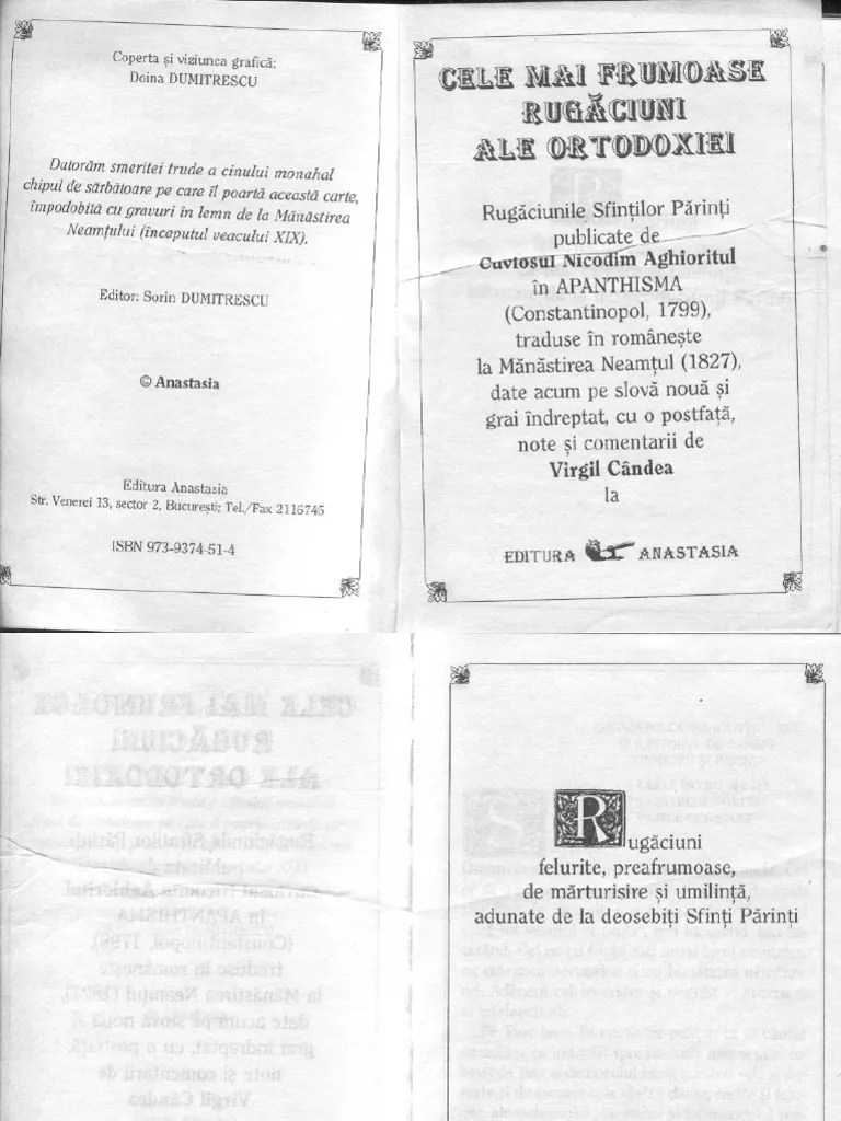 Textele au fost adunate din diverse surse pe care nu le pomenim aici datorita multimii lor. Rugăciune care se zice când se tămâiază (rugăciunea tămâierii) diverse rugăciuni; Acatistul sfantului antipa de la calapodesti. Rugăciunile mesei (rugăciunea la masa de dimineață, de prânz și cină) acatist de pocăinţă pentru iertarea păcatelor; Acatiste rugaciuni scrieri ortodoxe se poate găsi ușor pe căutând de pe telefonul mobil, în android market, oricare din următoarele cuvinte cheie: Canon de pocăință către domnul nostru iisus hristos. Astfel, sufletul se liniștește, crește speranța și te apropie de dumnezeu,. Acatistul sfantului lavrentie de cernigov.